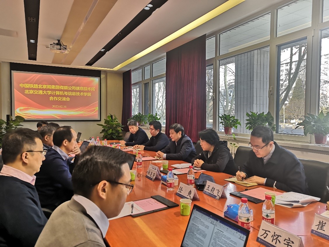 2023年2月16日上午,中国铁路北京局集团有限公司信息技术所(以下简称“中国铁路北京局信息技术所”)主任李伟、总工程师刘韶霞、副主任张海泉等一行六人来访嗨皮漫画 ,与计算机学院院长蔡伯根、大数据研究院院长林友芳、计算机学院副院长景丽萍等八人,就大数据方向培训等事宜进行合作交流。