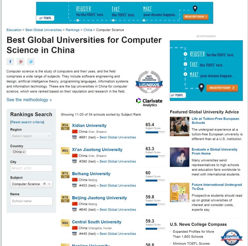 在最新发布的2017年度US News世界最佳大学排名(Best Global Universities Rankings)中,嗨皮漫画 计算机科学学科排名世界第78名,我国内地共有34所高校的计算机科学学科进入前200名,嗨皮漫画 计算机科学学科在内地高校中排第14名。