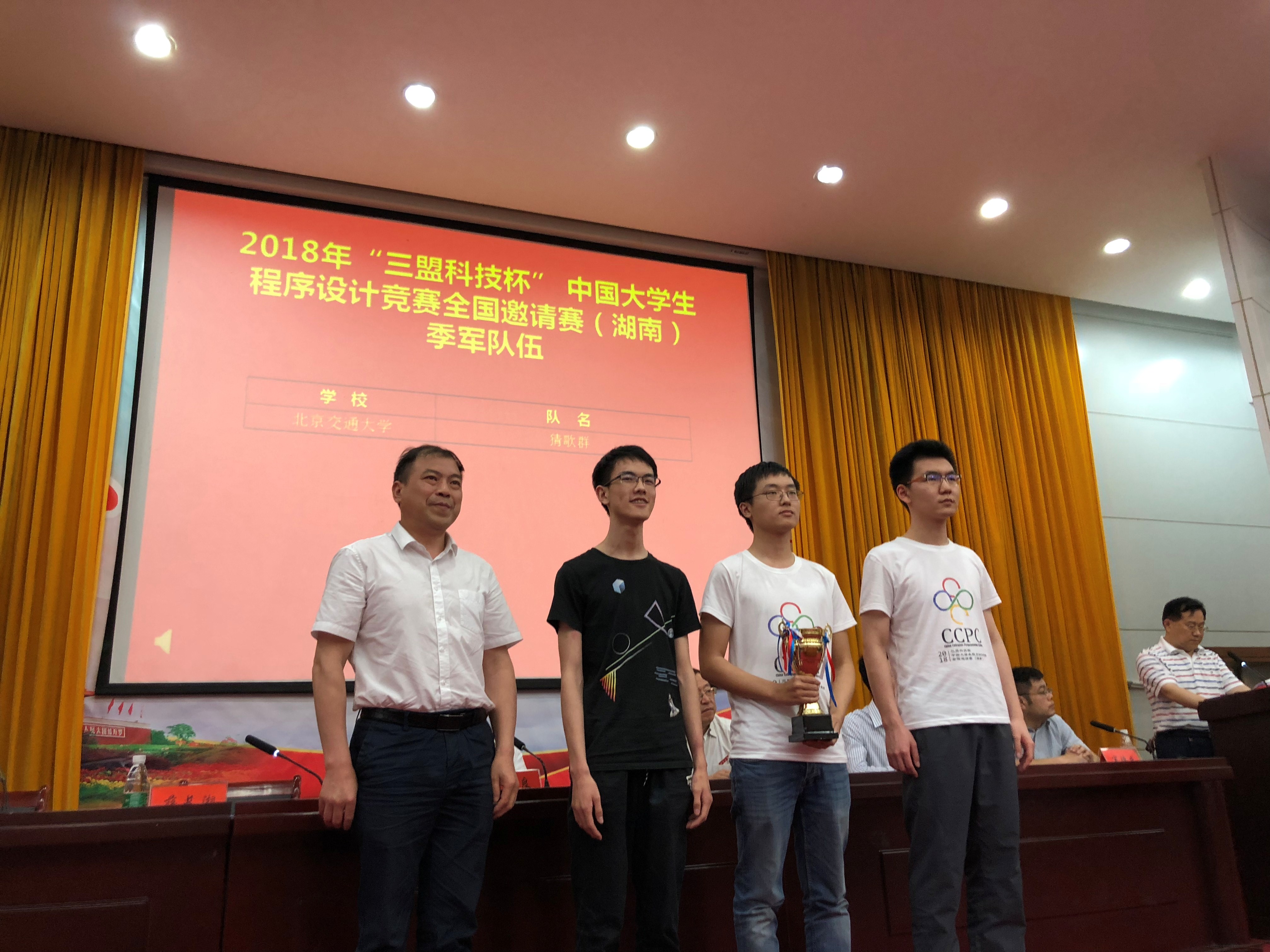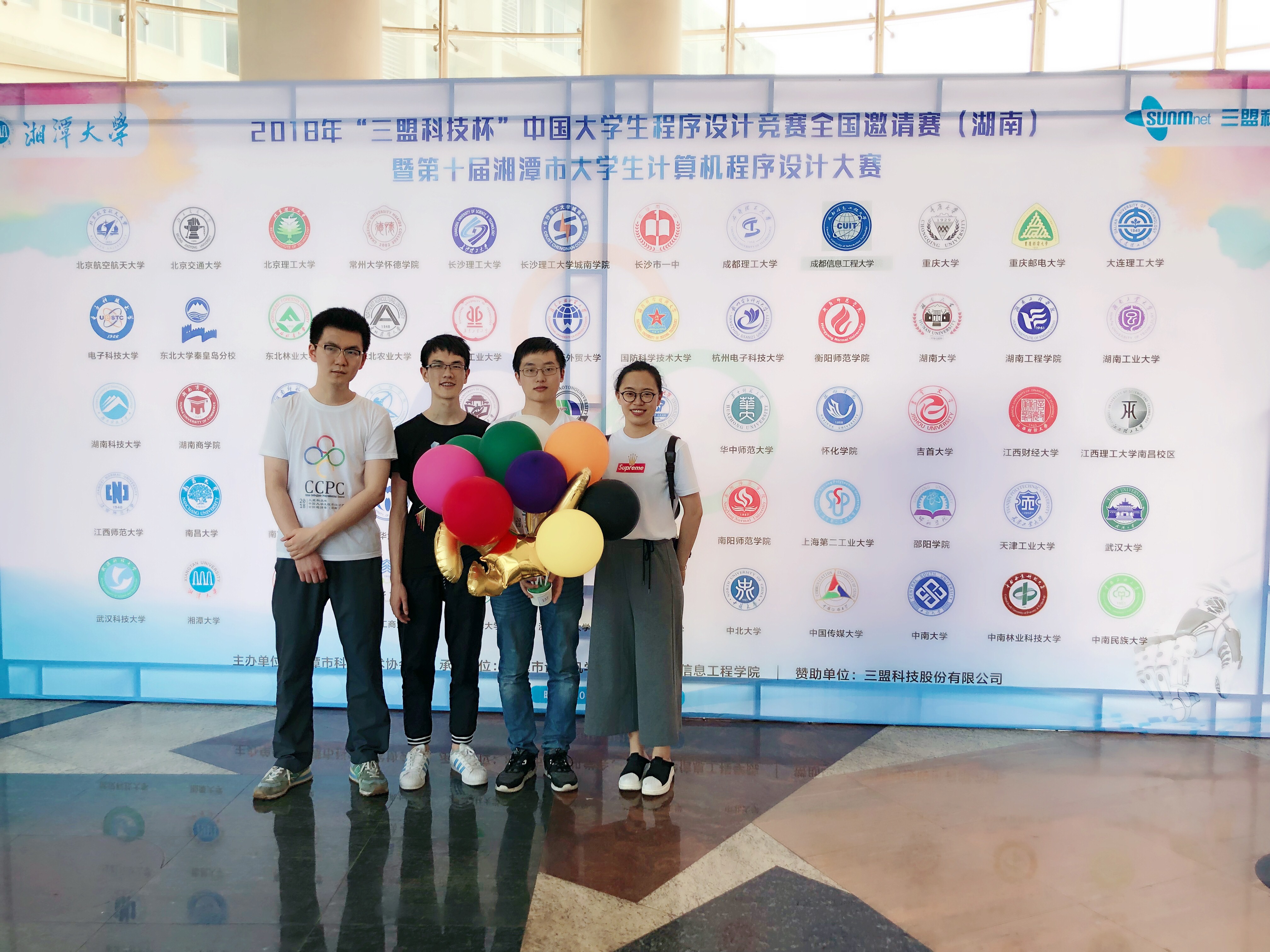 2018年第4届CCPC(中国大学生程序设计竞赛)全国邀请赛湘潭赛站于2018年5月12日-13日在湘潭大学举行。嗨皮漫画 派出参赛队伍——“猜歌群”队(何卫锋、郑黎明、王天舒)赴现场参赛。来自全国60所高校的177支队伍展开激烈角逐。在本赛站的开幕式上,嗨皮漫画 ACM教练许华婷应邀代表参赛教练发言。湘潭市科学技术协会党组书记、主席涂敬阳,湘潭市人民政府秘书长刘定良,湘潭市科学技术协会副主席蒋长湘,湘潭市计算机学会理事长刘任任,湘潭大学副校长刘建平,湘潭大学科协秘书长许斌等出席闭幕式。