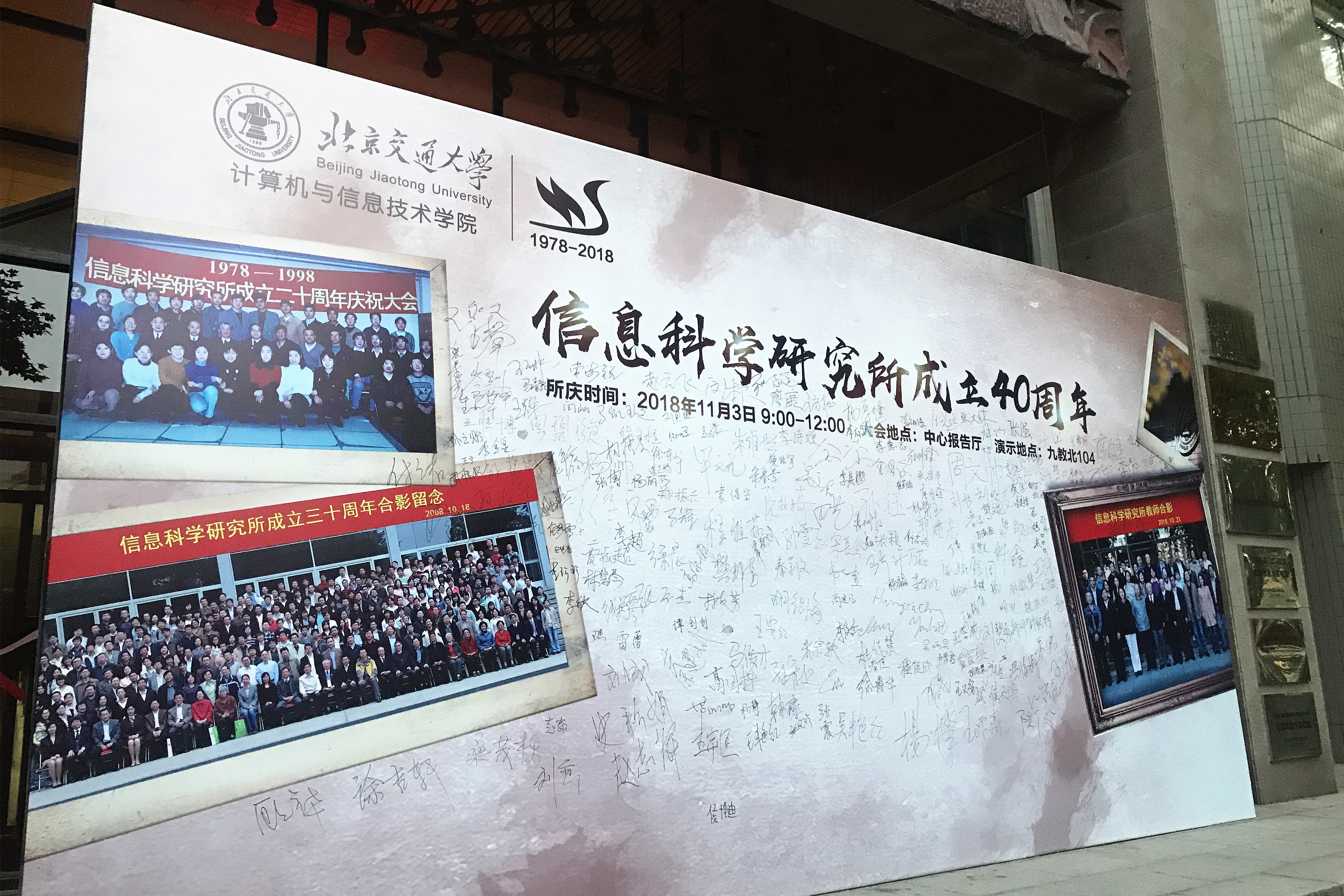 2018年11月3日,嗨皮漫画 计算机与信息技术学院信息科学研究所迎来四十华诞,邀请了嗨皮漫画 余祖俊副校长、科技处荆涛处长、研究生院李国岫常务副院长、电子信息工程学院唐涛院长、计算机与信息技术学院蔡伯根院长、杨晓晖书记等领导和中央军委联合参谋部第55所樊邦奎院士、美国犹他州立大学承恒达教授及毕业校友、在校师生等三百余人,在中心报告厅共同参加这一庆典活动。