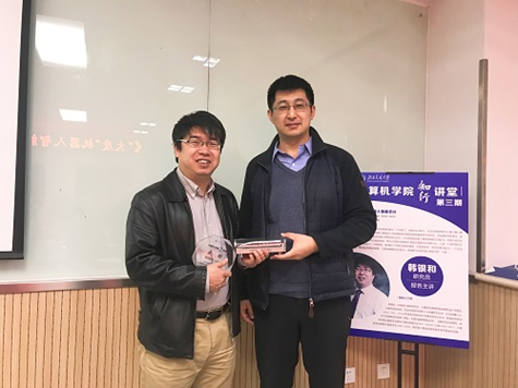 2018年11月22日, 计算机学院“知行讲堂”第三期邀请到中科院计算所韩银和研究员做了题为《“大度”机器人智能芯片》的精彩报告。
