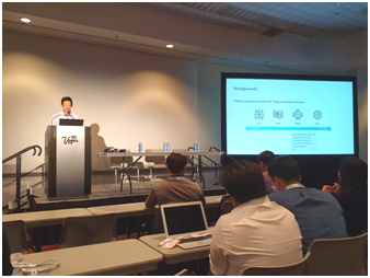 信息科学研究所王东副教授代表其研究小组在本次会议上宣讲了题目为《ABM-SpConv一种基于新型稀疏卷积算法的卷积神经网络FPGA硬件加速方法》(ABM-SpConv: A Novel Approach to FPGA-Based Acceleration of Convolutional Neural Network Inference)的论文。