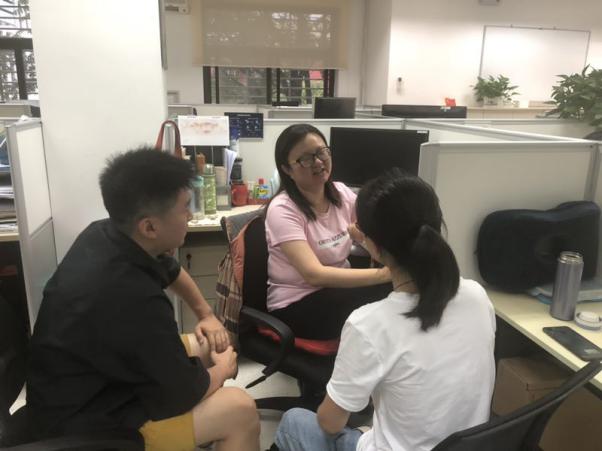 邓仕圣和吴坤同学被分配到钟立民老师身边学习。两位同学工作的第一天被安排协助工程师调试Java嵌入c代码后产生的bug。