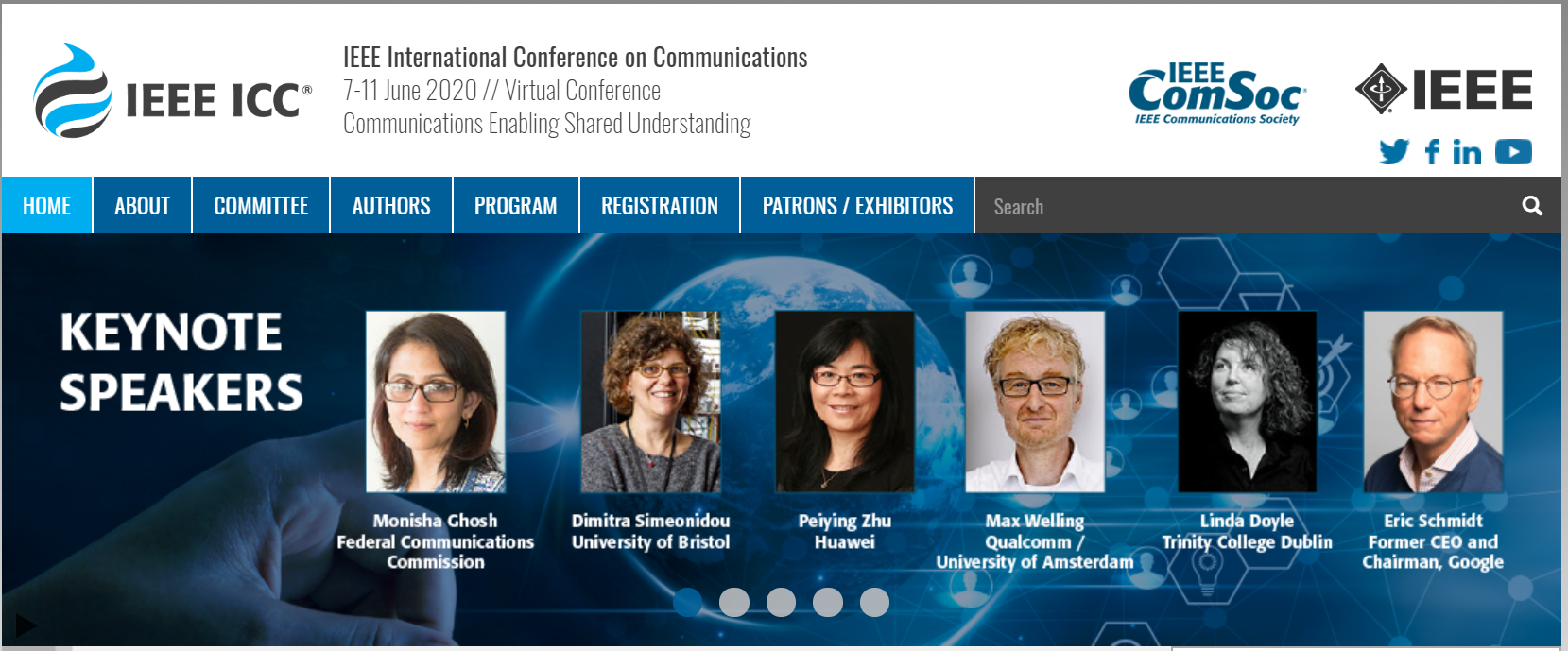IEEE ICC作为IEEE通信协会(IEEE Communications Society)旗舰会议,自1965年以来已举办50余年,旨在不断推进改造世界的信息技术、系统和基础设施的发展,为用户提供前所未有的高速、无缝、经济、高效的全球性通信服务,是世界通信行业规模最大、最具影响力的标志性学术会议之一。IEEE ICC 2020设置了技术论文、行业指南、技术专题和行业领域等多个种类的专题会议,关注领域包括物联网,大数据,光网络和系统,移动和无线网络,绿色通信系统和网络,卫星和太空通信,电子医疗等。