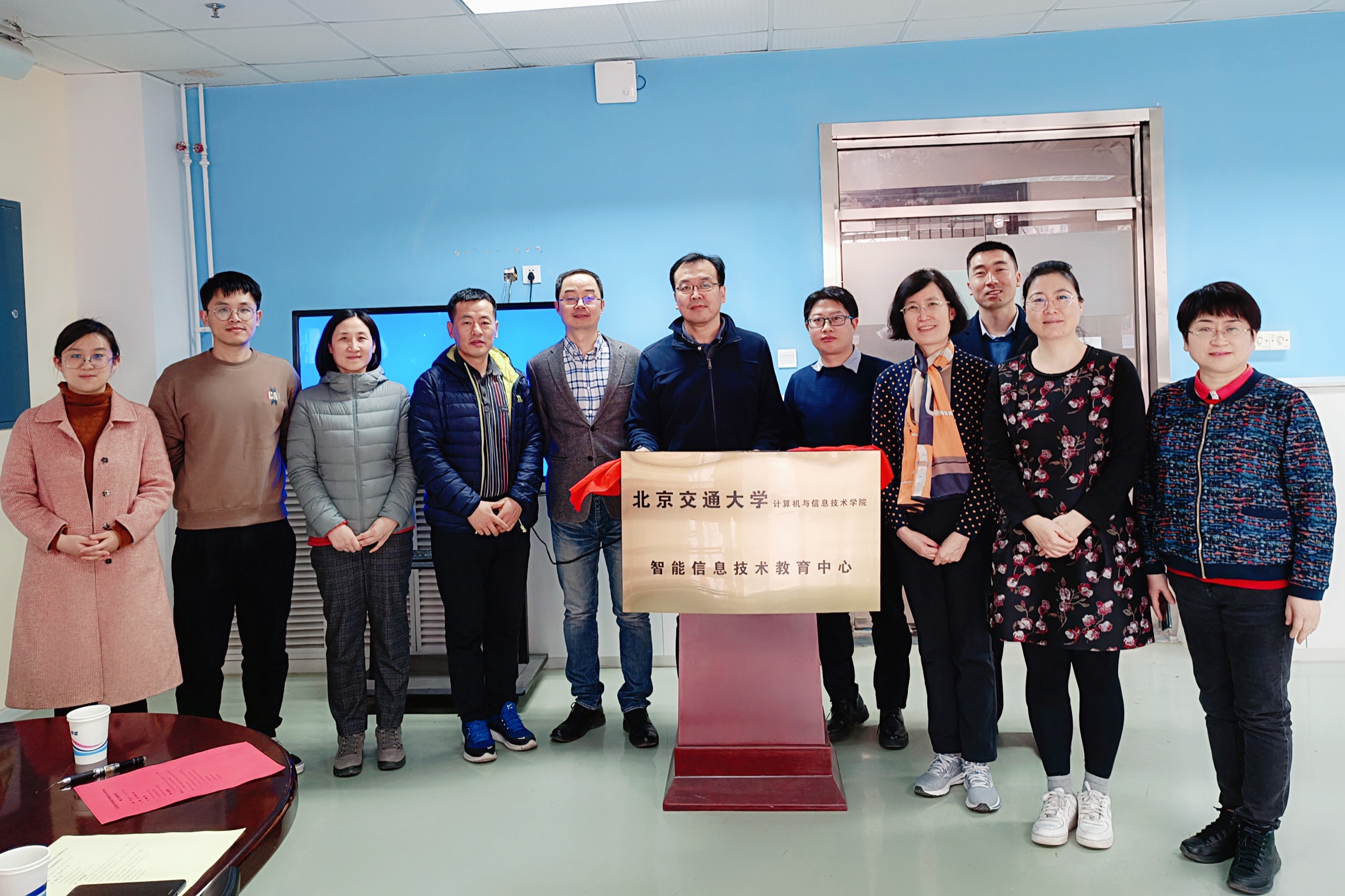 贾卓生宣布了学院成立“智能信息技术教育中心”和任命中心负责人的决定,并与中心主任李清勇一起,共同为中心揭牌。