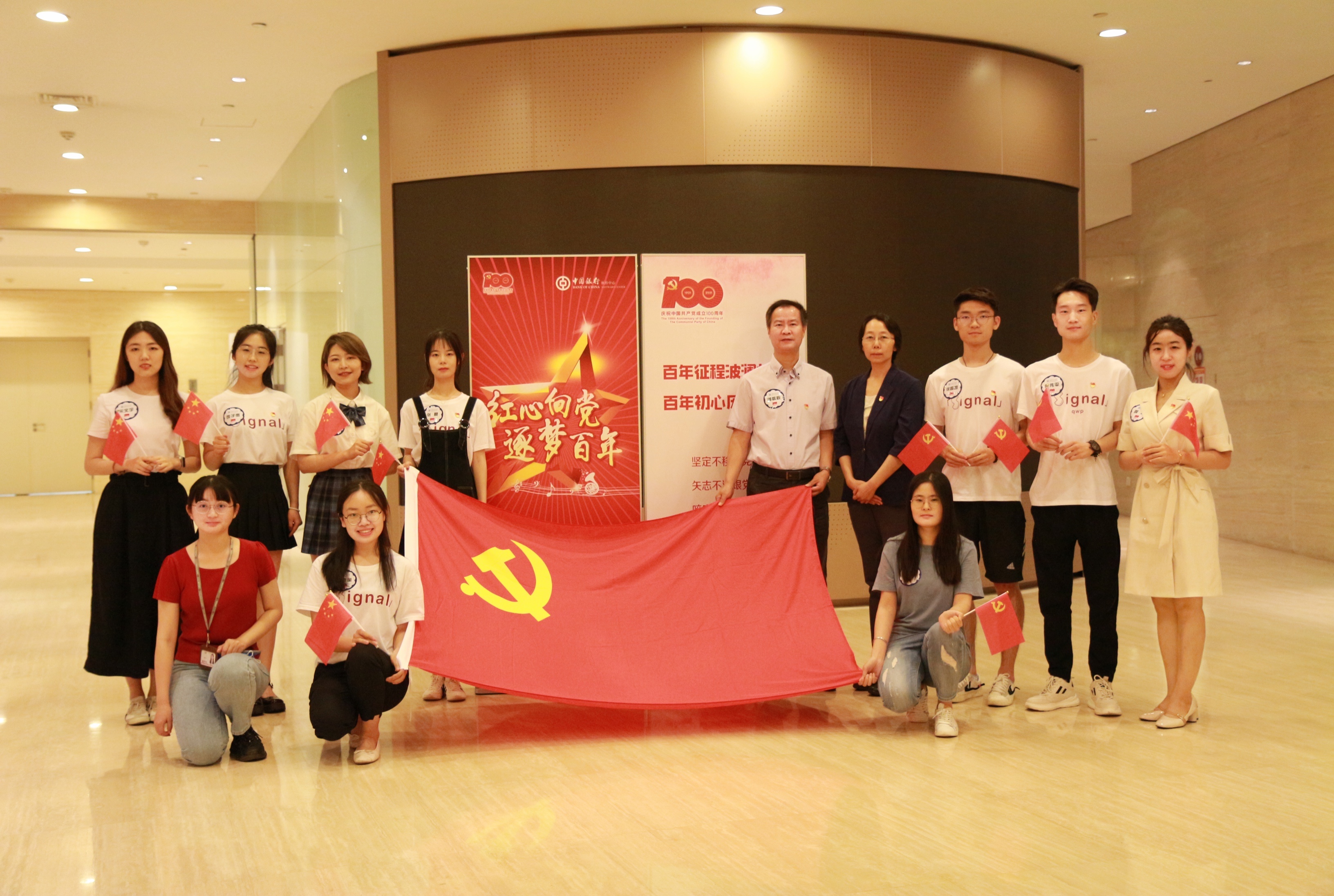 2021年6月23日,在中国共产党百年华诞即将来临之际,嗨皮漫画 计算机学院2019级、2020级信息所班硕士生党支部联合中国银行软件中心、单证中心党团共建,开展“红心向党、逐梦百年”主题红歌汇,共唱红歌、共学党史、共颂党情,向中国共产党建党100周年献礼。中国银行软件中心党委书记兼总经理王铿、中国银行单证中心党委书记兼总经理林宏、计算机学院党委副书记兼副院长董敬祝出席本次活动,三家单位线上线下近500人参加了本次庆祝活动。