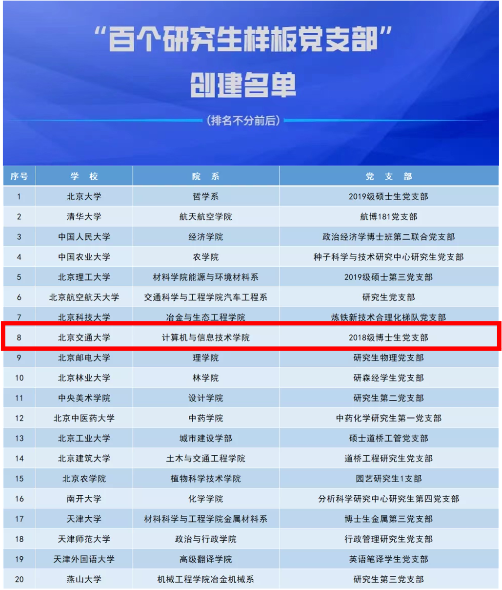 计算机学院2018级博士生党支部入选全国高校 “百个研究生样板党支部”