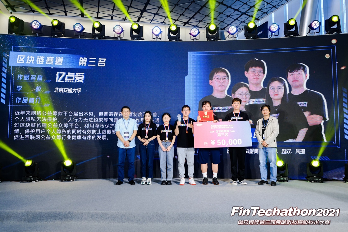 微众银行赞助团队所有成员赴深圳参加决赛,并在颁奖典礼上为交大团队领奖。