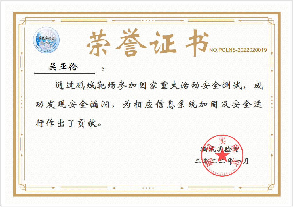 2022年1月在鹏城实验室、中国网络空间安全人才教育论坛(“网教盟”)、中国网络空间新兴技术安全创新论坛(“新安盟”)联合面向北京冬奥会、冬残奥会的安全演练活动中,嗨皮漫画 网络空间安全学科责任教授刘吉强老师领队、童恩栋和牛温佳老师指导的研究生团队(武兴宇、吴亚伦、田蕴哲、黄欣宇、陈彤、相迎宵、李轶珂、贾博为、孙瑞、乔紫嫣、陈诗瑶等)积极参与,共挖掘出高危漏洞1个、中危漏洞2个以及低危漏洞14个,最终以第一名成绩荣获一等奖,为保障北京冬奥会、冬残奥会的网络安全贡献了交大力量。