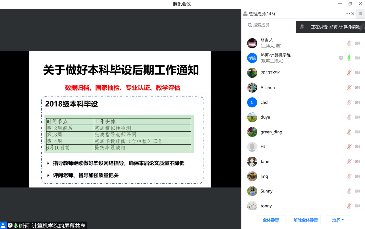计算机学院对本科人才培养工作极为重视。5月12日上午,学院召开线上本科教学全员工作会议,所有院领导以及全院教师近150人参会。会议由副院长熊轲主持。