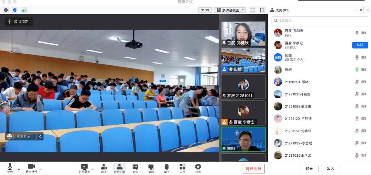 按照疫情防控要求,本次启动会采用了“线上+线下”相结合的方式,在校学生在九教中102教室与百度公司的领导和班主任通过腾讯视频会议开展了一场别开生面的云交流。