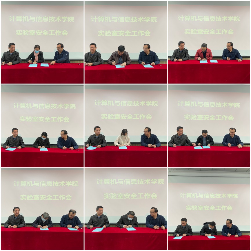 会议现场宣读了学院安全责任书主要内容,明确各系所负责人为实验室安全责任人,对实验室安全负有主要责任,并现场签署实验室安全责任书。