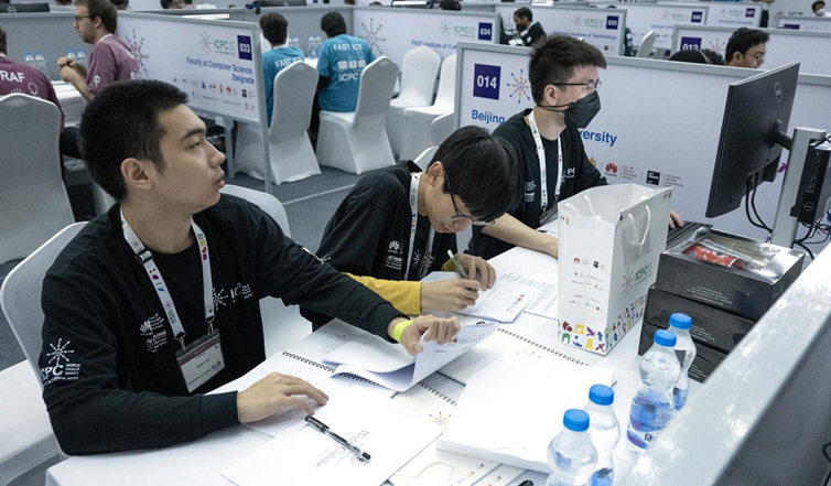 比赛期间,每支参赛队伍需使用1台计算机在5个小时内使用C、C++、Java或Python等程序设计语言编写程序解决10-13个问题,程序由评测软件自动运行并由裁判确认评测结果并及时通知参赛队。根据解题数量和通过题目的总用时实时排名。除为增加悬念设置的最后一小时封榜外,所有场内选手和场外观众都可以看到实时排名。每支队伍在正确解除一题后,组织者将在其位置上升起一个代表该题颜色的气球。每道题用时是从竞赛开始到该题解答判定为正确为止,期间的每次错误提交将增加20分钟罚时,未正确求解的提交不记时。