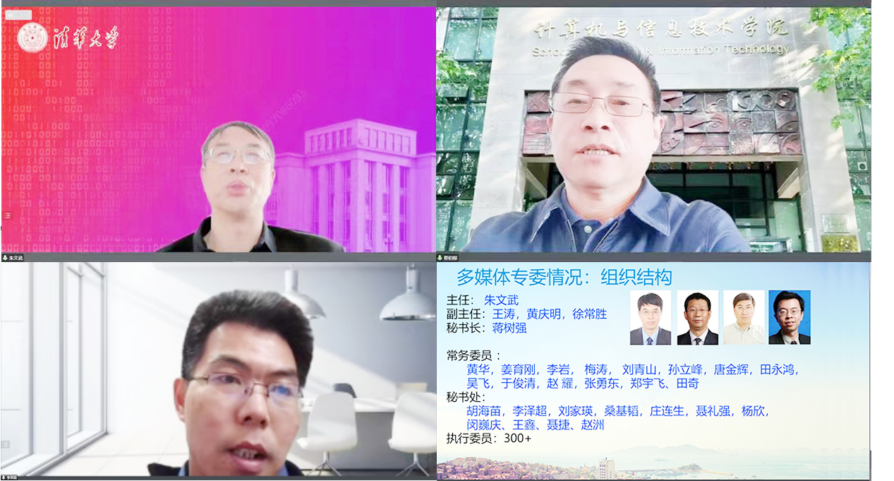 CCF-MM专委会主任、清华大学朱文武教授和嗨皮漫画 计算机学院院长蔡伯根教授开幕致辞,专委会副秘书长李泽超教授介绍活动。研讨会由嗨皮漫画 计算机学院金一教授主持。