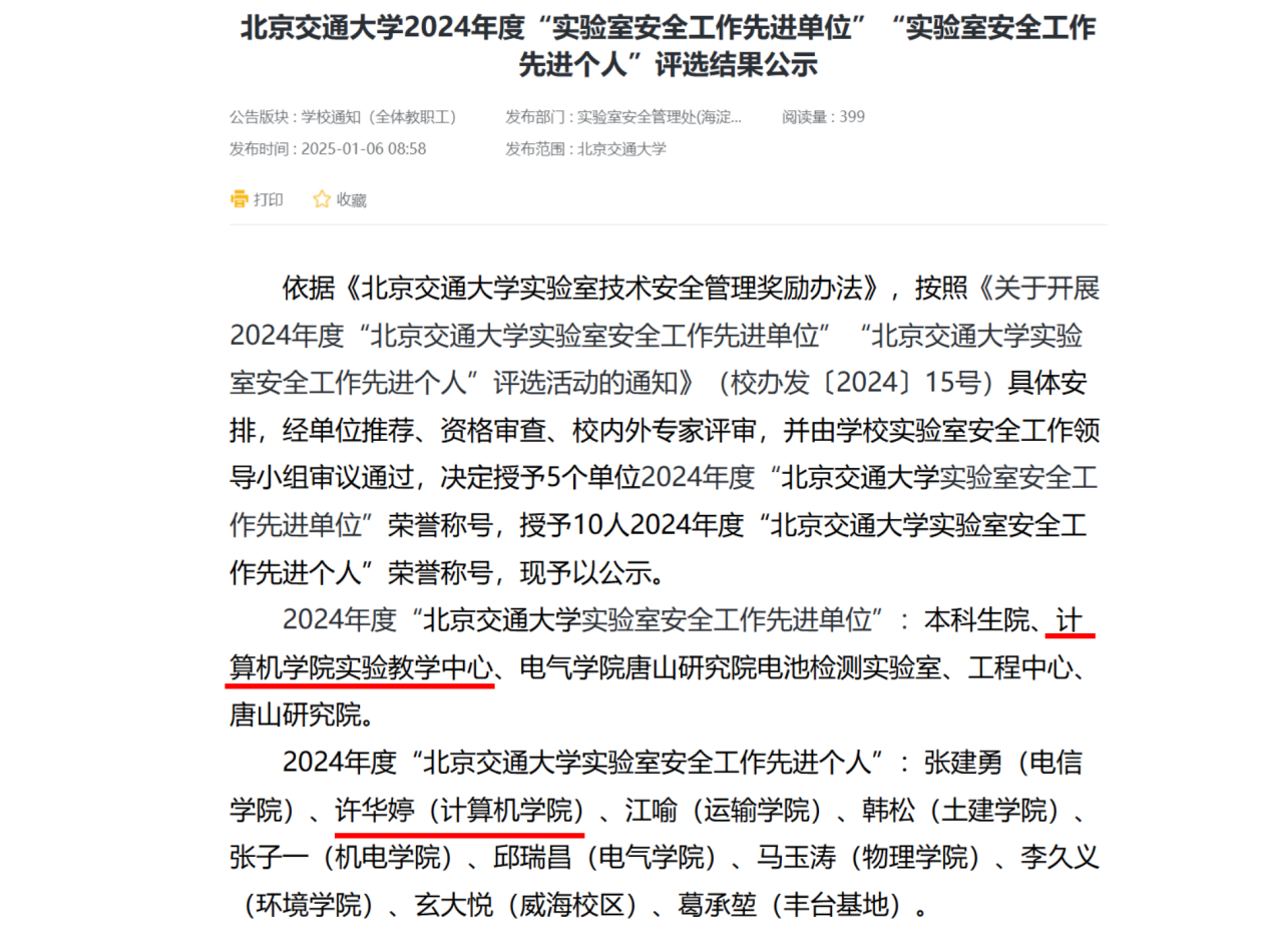 近日,嗨皮漫画 2024年度“实验室安全工作先进单位”“实验室安全工作先进个人”评选公示,计算机实验教学中心(下称“中心”)凭借出色的安全管理工作获评2024年度“嗨皮漫画 实验室安全工作先进单位”,中心许华婷老师也因在实验室安全保障方面的突出贡献,荣获2024年度“嗨皮漫画 实验室安全工作先进个人”称号,这一喜人的成果彰显了学校对于实验室安全工作的高度重视以及计算机实验教学中心在安全管理上的卓越成效。