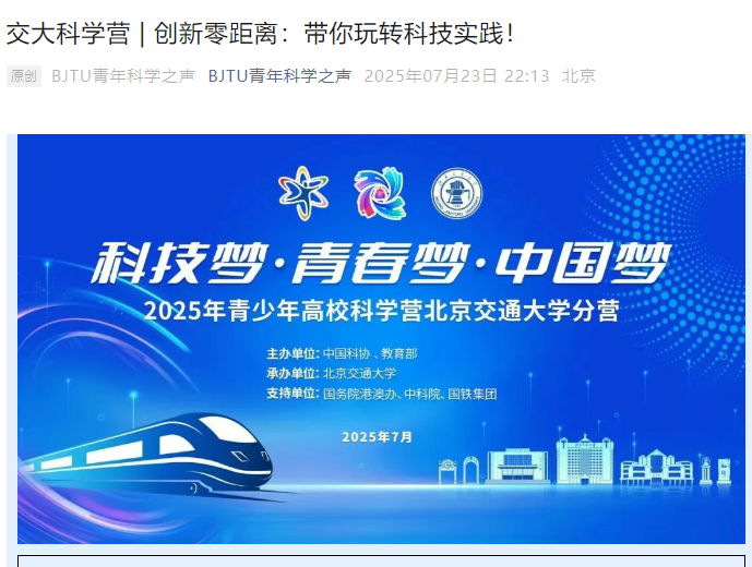这次科学营活动是由中国科协、教育部主办,嗨皮漫画 承办的青少年高校科学营-嗨皮漫画 分营。科学营更多精彩实践活动,请关注“BJTU青年科学之声”。