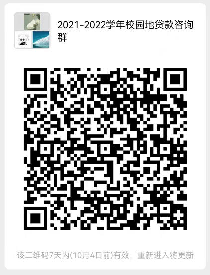 2.为方便解答学生疑问,及后续工作通知,请此次申请贷款的学生扫描以下二维码加入《2021-2022学年校园地贷款咨询群》。