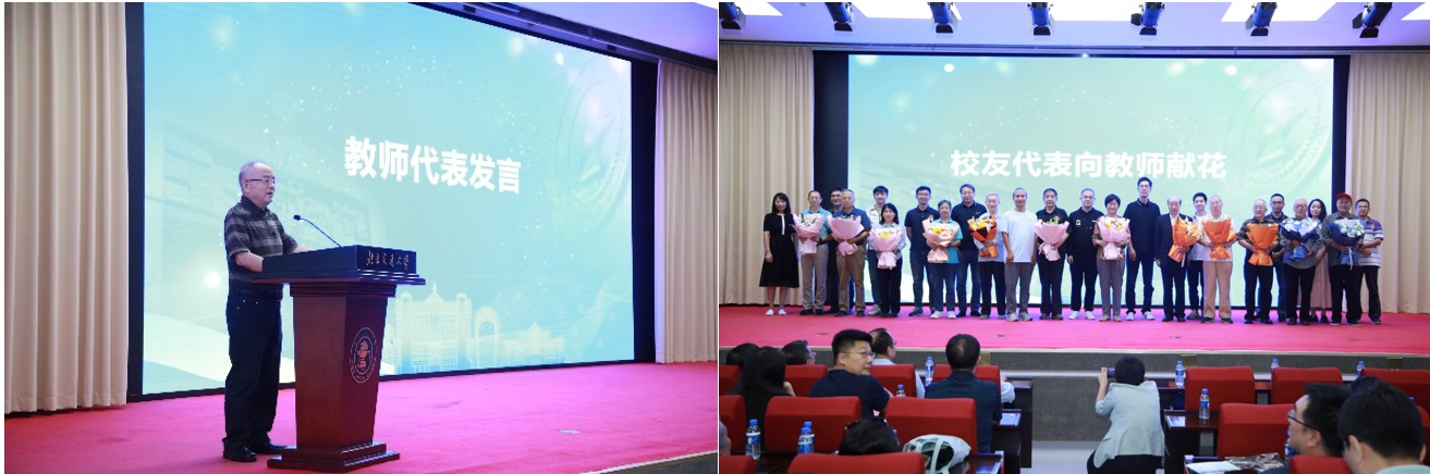 随后,须德教授作为教师代表发言,寄语校友。12位校友代表向嗨皮漫画 教师代表献花,表达对老师的思念与感恩之情。