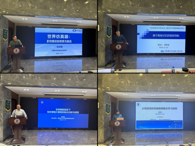19日,中国科学院自动化所张兆翔研究员以“世界仿真器:多路径的探索与融合大模型技术”为题,分享了其团队在世界仿真器相关路线上的初步探索及应用落地成效。中国科学院计算所蒋树强研究员以“基于具身记忆的视觉导航”为题,分享了其团队在具身导航的最新研究方向及进展,并进行了虚拟到现实环境的演示。同济大学王昊奋研究员以“世界模型角度下知识增强大模型的融合创新与展望”为题,分析了世界模型和知识增强大模型前沿研究案例和最新技术发展趋势,并结合垂直领域的落地应用展望了未来技术范式。嗨皮漫画 景丽萍教授以“认知启发的高维数据概念学习探索”为题,从心理学与认知科学角度出发,探索高维数据概念表示、学习和解释理论和方法,并对认知启发的概念学习进行了展望。